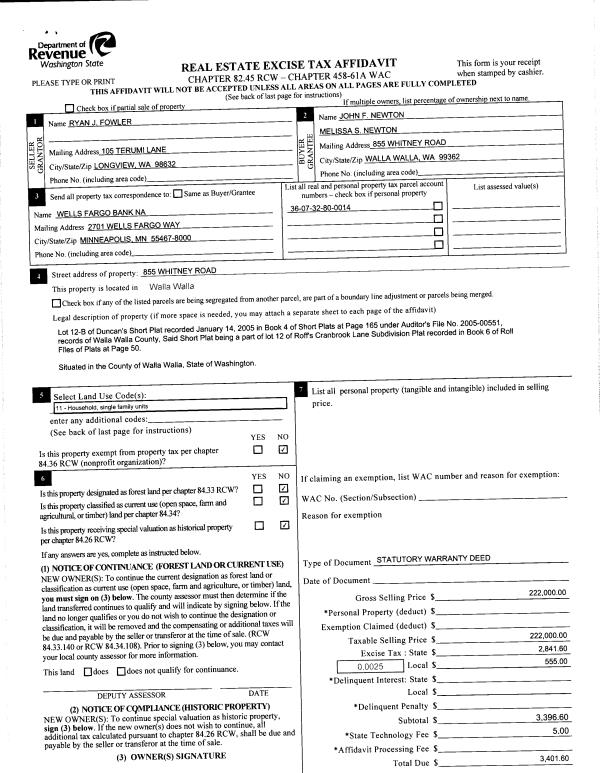 | 1 | 09/11/2015 | SWD | STATUTORY WARRANTY DEED | FOWLER RYAN J | NEWTON JOHN F & MELISSA S | | | $222,000.00 | 128799 | 2015-07954 |