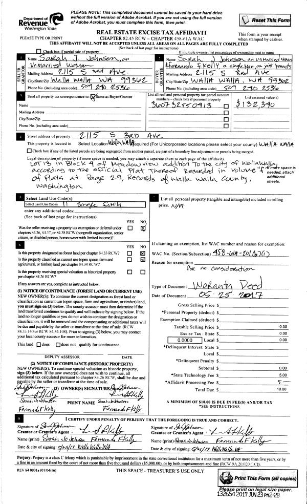 | 3 | 05/25/2017 | WARRANTY D | WARRANTY DEED | JOHNSON SARAH J | JOHNSON SARAH J | | | $0.00 | 132654 | 2017-04828 |