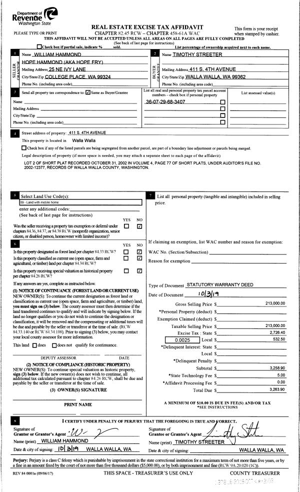 | 2 | 10/04/2019 | SWD | STATUTORY WARRANTY DEED | HAMMOND WILLIAM | STREETER TIMOTHY | | | $213,000.00 | 137816 | 2019-07909 |