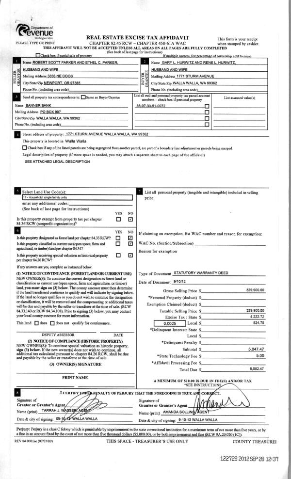 | 1 | 09/28/2012 | WARRANTY D | WARRANTY DEED | PARKER, ROBERT SCOTT & ETHEL C | HURWITZ, GARY L & RENE L | | | $329,900.00 | 122728 | 2012-08545 |