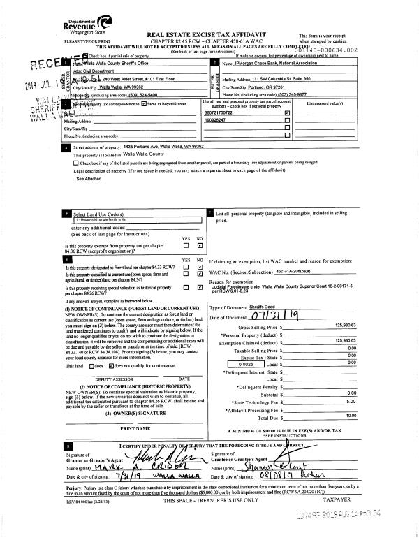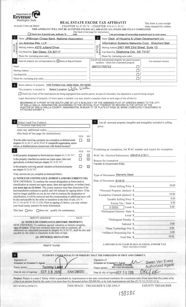 | 2 | 08/19/2019 | WARRANTY D | WARRANTY DEED | JPMORGAN CHASE BANK | SECRETARY OF HOUSING & URBAN DEVELOPMENT | | | $0.00 | 138585 | 2020-01198 |