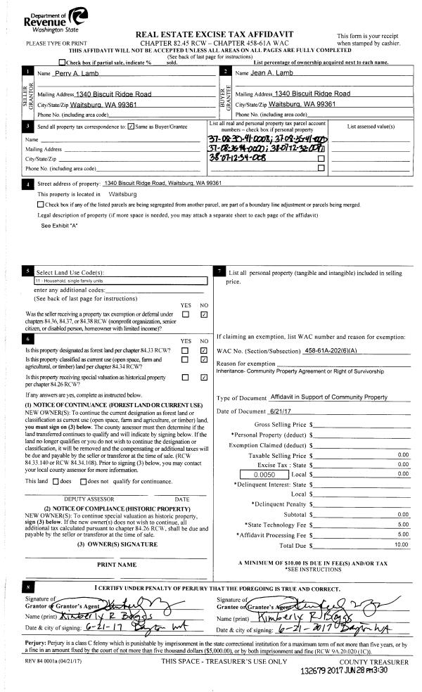 | 1 | 07/19/2017 | COMMUNITY | COMMUNITY PROPERTY AGREEMENT | LAMB PERRY ALAN ESTATE | LAMB JEAN A | | | $0.00 | 132814 | 2017-05813 |