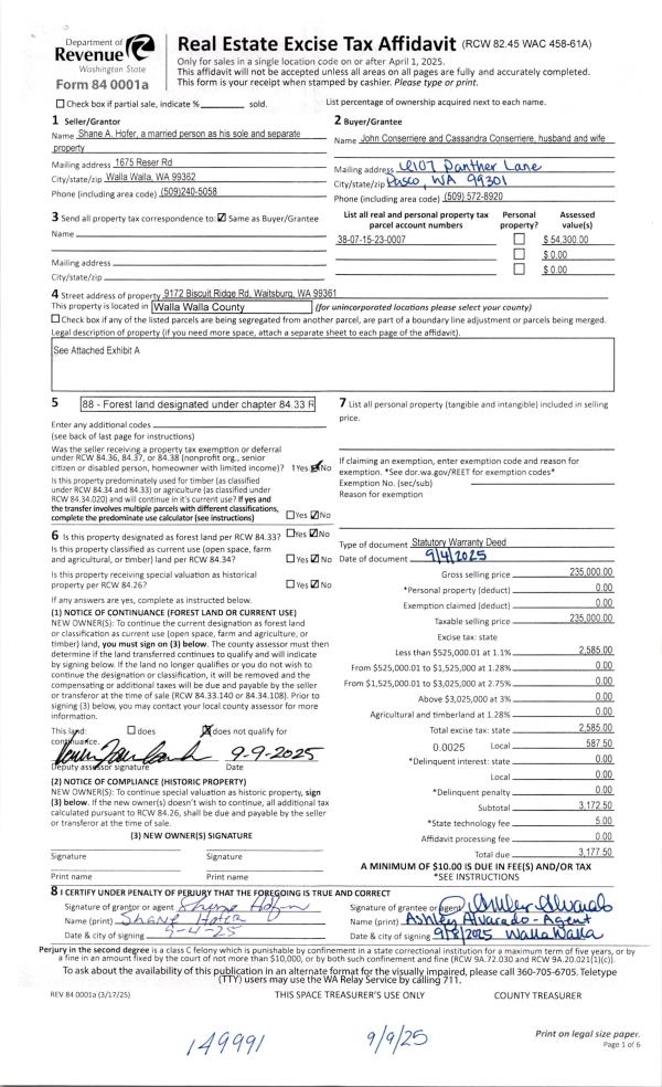 | 1 | 09/09/2025 | SWD | STATUTORY WARRANTY DEED | HOFER SHANE A | CONSERRIERE JOHN & CASSANDRA | | | $235,000.00 | 149991 | 2025-05457 |