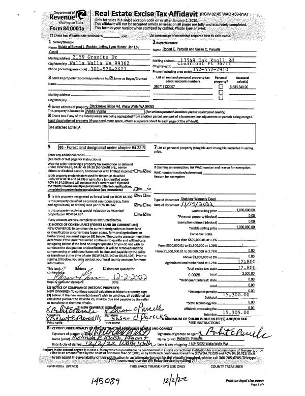 | 1 | 12/05/2022 | SWD | STATUTORY WARRANTY DEED | PARCELLS ROBERT E & SUSAN C | | | | | 145089 | 2022-09506 |