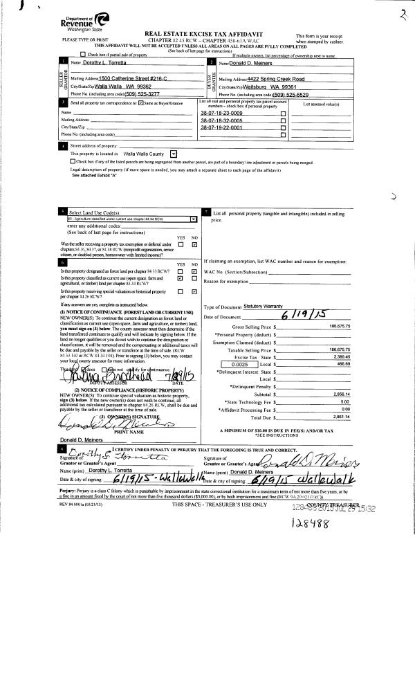| 6 | 07/29/2015 | CONT | CONTRACT | TORRETTA DOROTHY L | MEINERS DONALD D | | 3-PARCELS | $186,675.00 | 128488 | 2015-06507 |