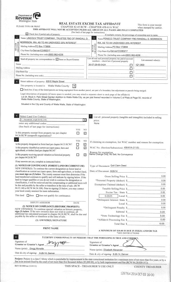 | 5 | 10/03/2014 | QCD | QUIT CLAIM DEED | | | | | | 126764 | 2014-07286 |