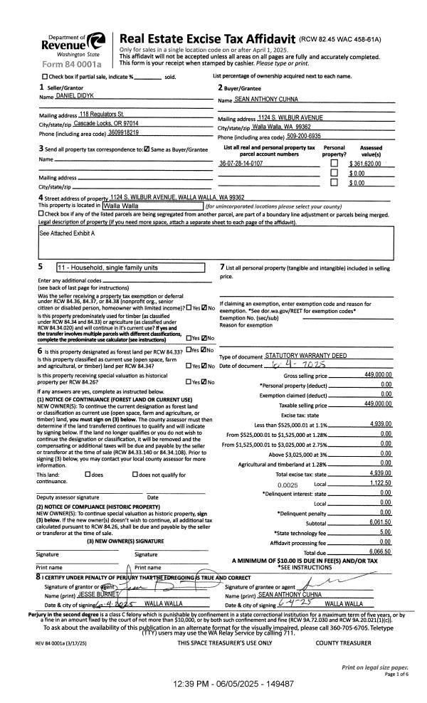 | 1 | 06/05/2025 | SWD | STATUTORY WARRANTY DEED | DIDYK DANIEL | CUHNA SEAN ANTHONY | | | $449,000.00 | 149487 | 2025-03154 |