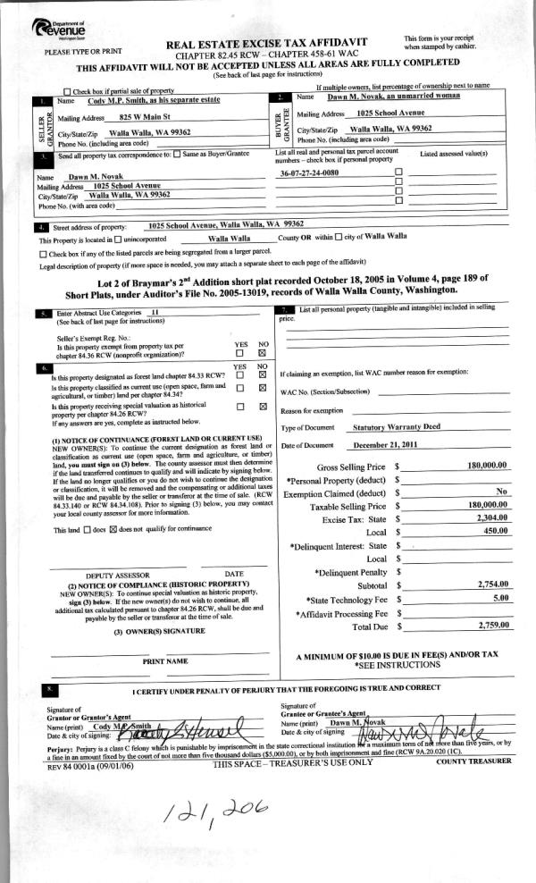 | 3 | 12/30/2011 | WARRANTY D | WARRANTY DEED | SMITH, CODY M P | NOVAK, DAWN M | | | $180,000.00 | 121206 | 2011-10349 |