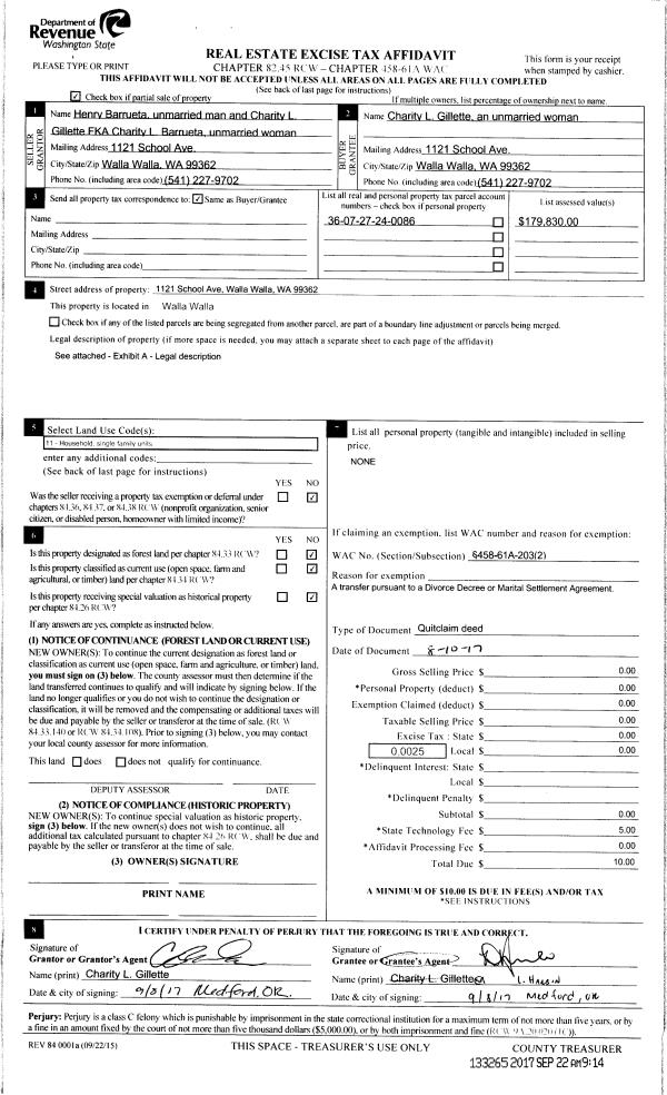 | 3 | 08/10/2017 | QCD | QUIT CLAIM DEED | BARRUETA HENRY & CHARITY | GILLETTE CHARITY L | | | $0.00 | 133265 | 2017-07496 |