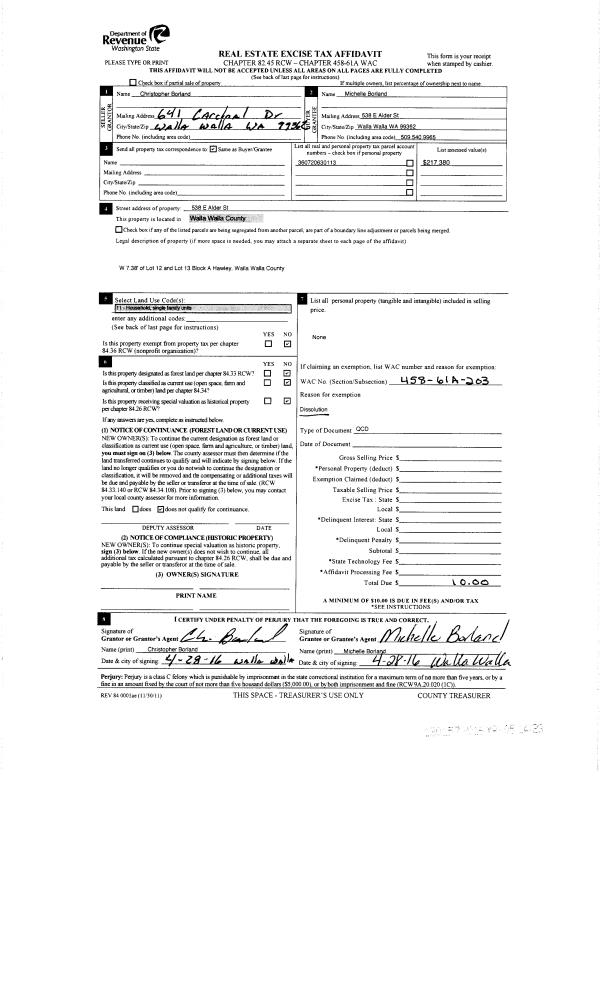 | Mailing Address: | 538 E ALDER ST WALLA WALLA, WA 99362 | % Ownership: | 100.0000000000% |
