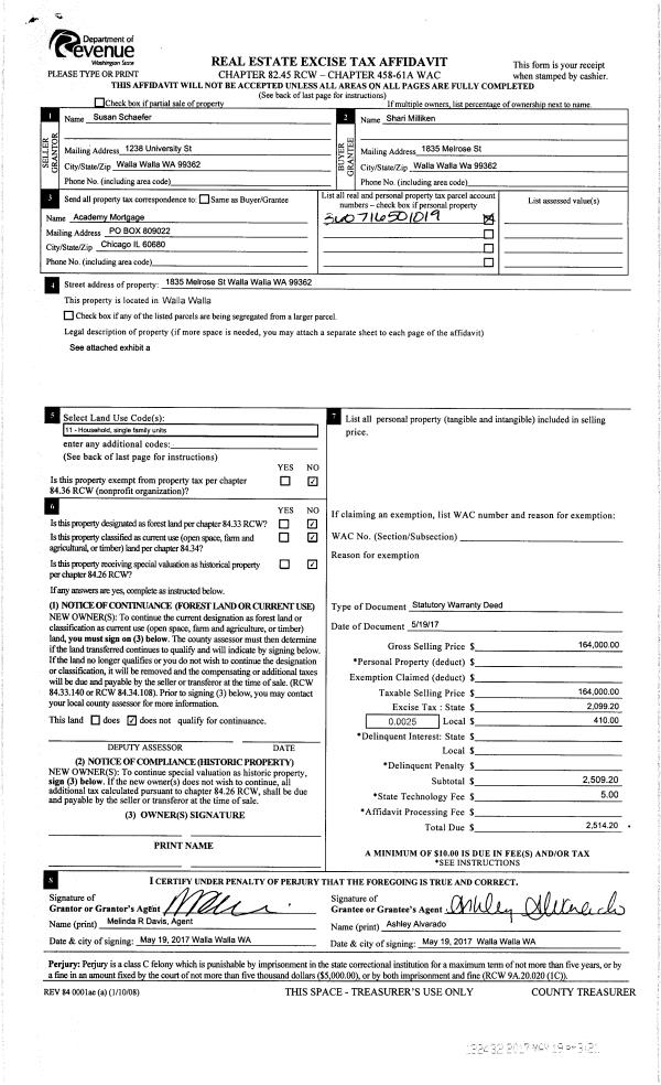 | 2 | 05/19/2017 | SWD | STATUTORY WARRANTY DEED | HALL SUSAN C | MILLIKEN SHARI M | | | $164,000.00 | 132432 | 2017-03800 |