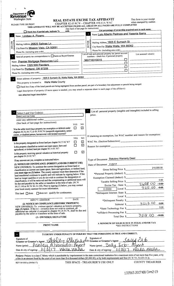 | Mailing Address: | LOIS ALBERTO PEDROZA 1605 E SUMACH ST WALLA WALLA, WA 99362 | % Ownership: | 100.0000000000% |