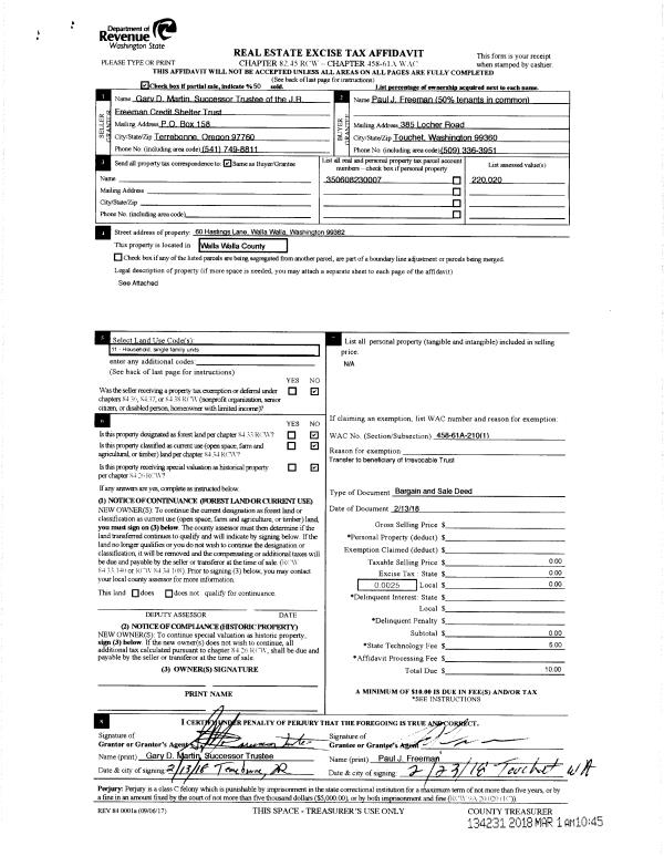 | 2 | 02/23/2018 | BARGAIN & | BARGAIN & SALE DEED | FREEMAN JOAN L REVOCABLE LIVING TRUST | FREEMAN JOAN L REVOCABLE LIVING TRUST | | | $0.00 | 134231 | 2018-01635 |