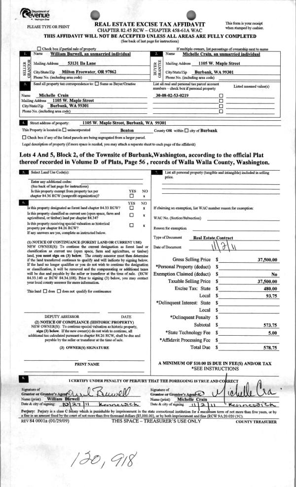 | 7 | 05/01/2006 | QCD | QUIT CLAIM DEED | ASH, R L & JEAN | WHITMAN INVESTORS LLC | | | | 110146 | 2006-04882 |