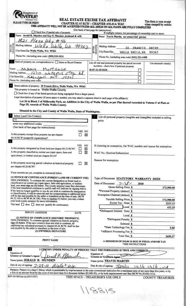 | 6 | 07/30/2010 | WARRANTY D | WARRANTY DEED | MUNDEN, JERALD R & KAY F | MARTIN, TRAVIS | | | $172,900.00 | 118815 | 2010-05918 |