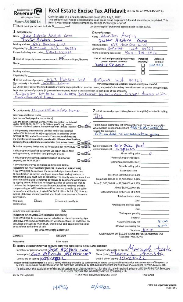 | 1 | 10/28/2022 | QCD | QUIT CLAIM DEED | CANO JAVIER AISPURO AND | ACOSTA MARISELA & JAVIER AISPURO CANO | | | $0.00 | 144926 | 2022-08782 |