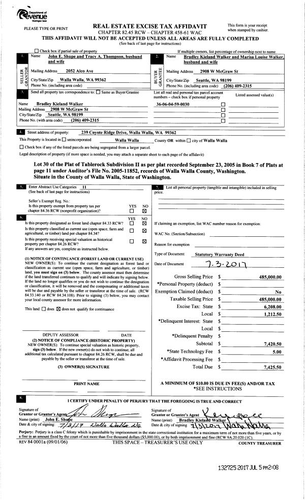 | 2 | 07/05/2017 | SWD | STATUTORY WARRANTY DEED | SHUPE JOHN E | WALKER BRADLEY KIELAND & MARISA LOUISE | | | $485,000.00 | 132725 | 2017-05121 |