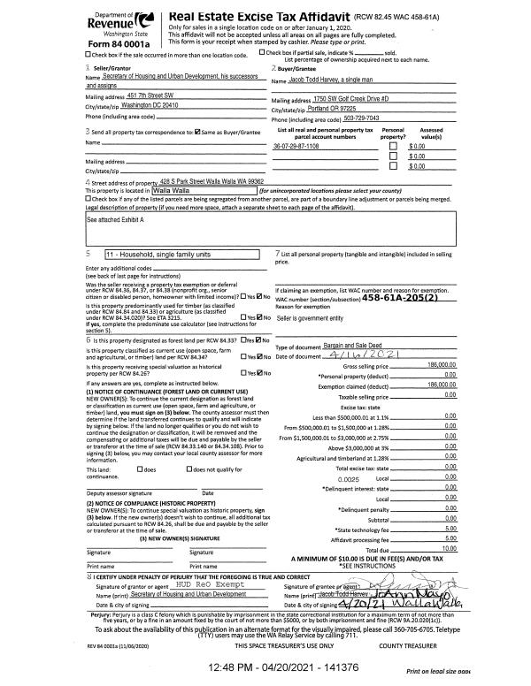 | 2 | 04/20/2021 | SWD | STATUTORY WARRANTY DEED | SECRETARY OF HOUSING AND URBAN DEVELOPMENT | HARVEY JACOB TODD | | | $186,000.00 | 141376 | 2021-04608 |
