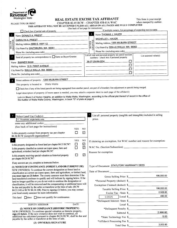 | 2 | 09/11/2015 | SWD | STATUTORY WARRANTY DEED | PRIEST DONALD A & CAROLYN A | HAUER THOMAS J & MICHELLE L | | | $196,000.00 | 128800 | 2015-07956 |