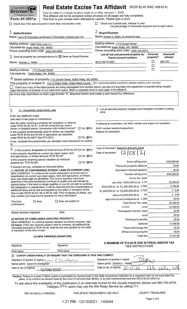 | 2 | 12/13/2021 | SWD | STATUTORY WARRANTY DEED | CHRISTOPHER AARON B & BRIANNE P | HAFEN ZACHARY L | | | $560,000.00 | 143044 | 2021-14594 |