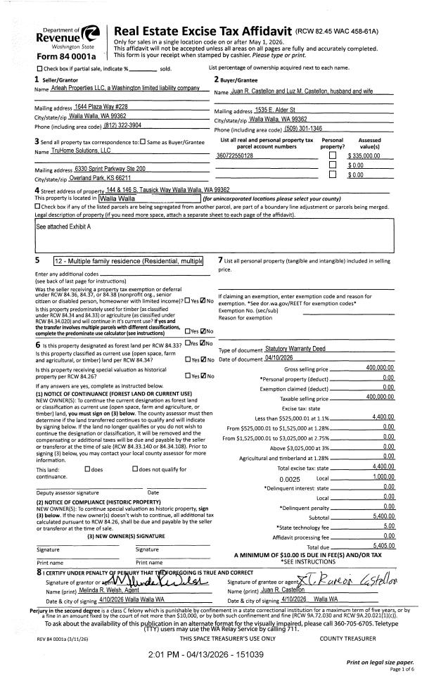 | Mailing Address: | 1644 PLAZA WAY #228 WALLA WALLA, WA 99362 | % Ownership: | 100.0000000000% |