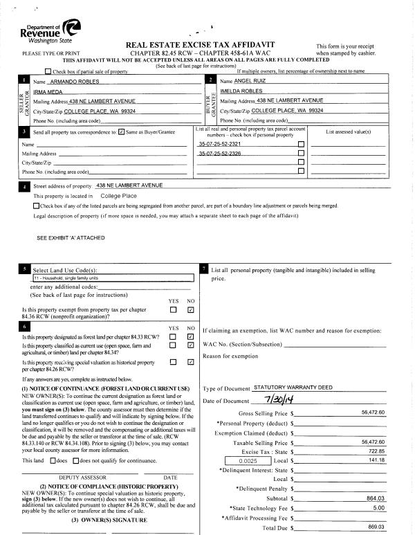 | Mailing Address: | IMELDA ROBLES 438 NE LAMBERT AVE COLLEGE PLACE, WA 99324 | % Ownership: | 100.0000000000% |