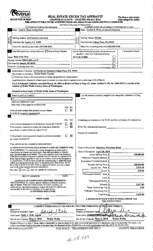 | Mailing Address: | 126 WITHVA ST WALLA WALLA, WA 99362 | % Ownership: | 100.0000000000% |