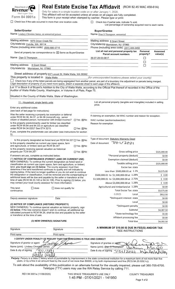 | Mailing Address: | 637 LOCUST ST WALLA WALLA, WA 99362 | % Ownership: | 100.0000000000% |