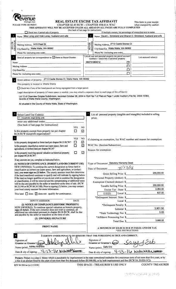 | 2 | 04/14/2016 | SWD | STATUTORY WARRANTY DEED | LONEY MIKE & VICKI | STRICKLAND DAVID L & SHARON D | | | $255,000.00 | 130009 | 2016-02687 |