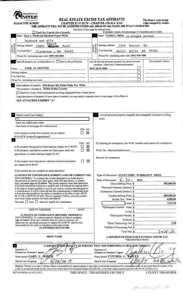 | 3 | 06/27/2014 | SWD | STATUTORY WARRANTY DEED | WIRTH GARY L & MARIBETH FRASER-WIRTH | BAILEY CYNTHIA L | | | $485,000.00 | 126144 | 2014-04447 |