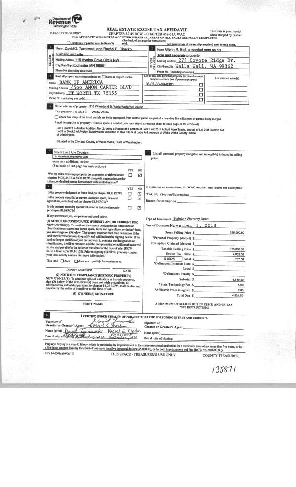 | 3 | 11/02/2018 | SWD | STATUTORY WARRANTY DEED | TARNOWSKI DAVID G | BELL GLENN R | | | $315,000.00 | 135871 | 2018-09136 |