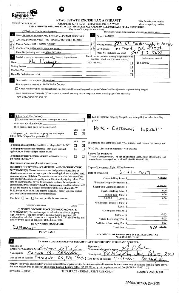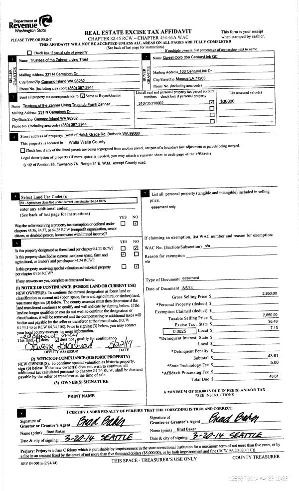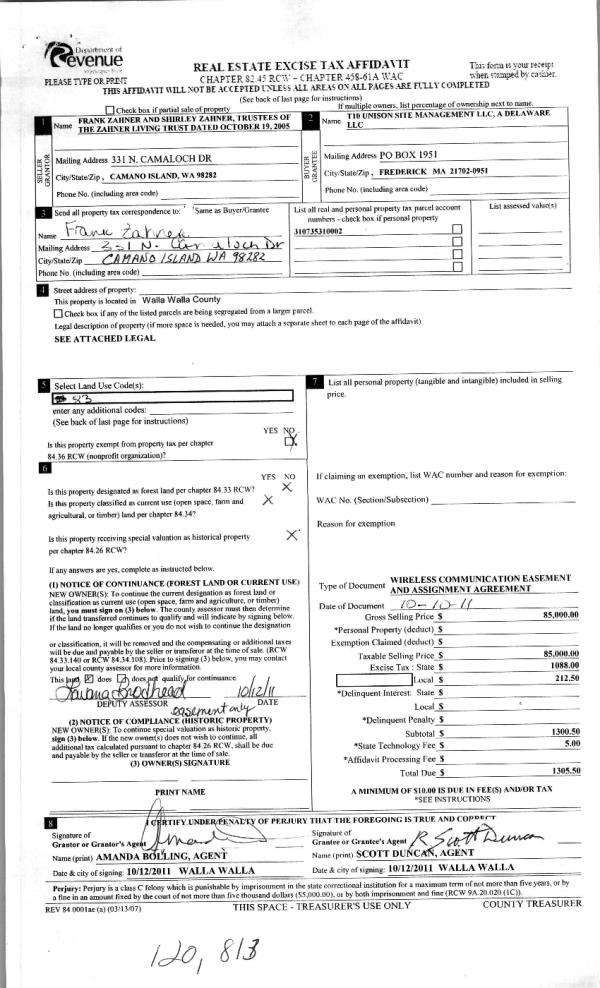 | Mailing Address: | ZAHNER LIVING TRUST C/O FARMLAND CO MANAGEMENT 2828 E 32ND AVE SUITE B SPOKANE, WA 99223 | % Ownership: | 100.0000000000% |