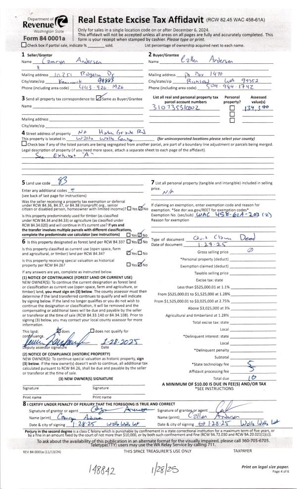 | 1 | 01/28/2025 | QCD | QUIT CLAIM DEED | ANDERSEN CALLEN & CAMRYN | ANDERSEN CALLEN | | | | 148842 | 2025-00451 |