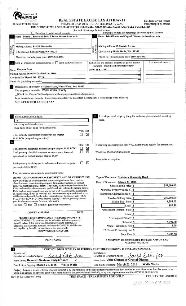 | Mailing Address: | 87 ELECTRIC AVE WALLA WALLA, WA 99362 | % Ownership: | 100.0000000000% |