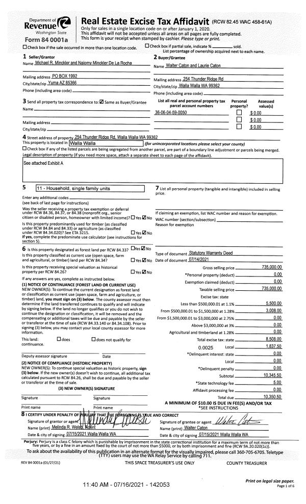| 1 | 07/16/2021 | SWD | STATUTORY WARRANTY DEED | MINCKLER MICHAEL R | CATON WALTER & LAURIE | | | $735,000.00 | 142053 | 2021-08666 |