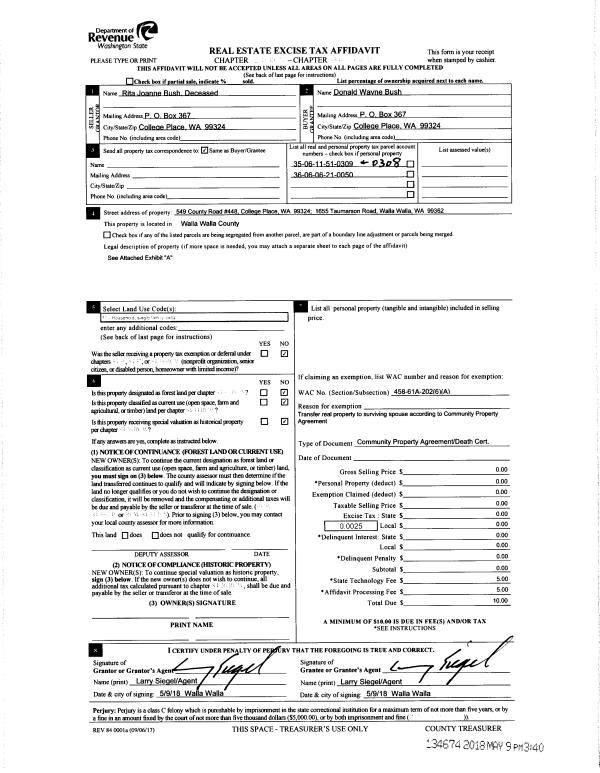 | 5 | 05/09/2018 | COMMUNITY | COMMUNITY PROPERTY AGREEMENT | BUSH DONALD W & RITA J | | | | | 134674 | 2018-03642 |