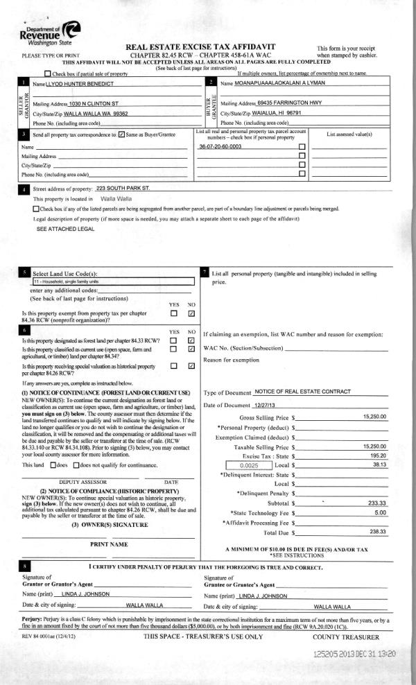 | 5 | 01/30/2014 | FUL | FULFILLMENT DEED | LYMAN MOANAPUAAALOAKALANI A | LYMAN MOANAPUAAALAOKALANI A | | | $15,250.00 | 125205 | 2014-00730 |