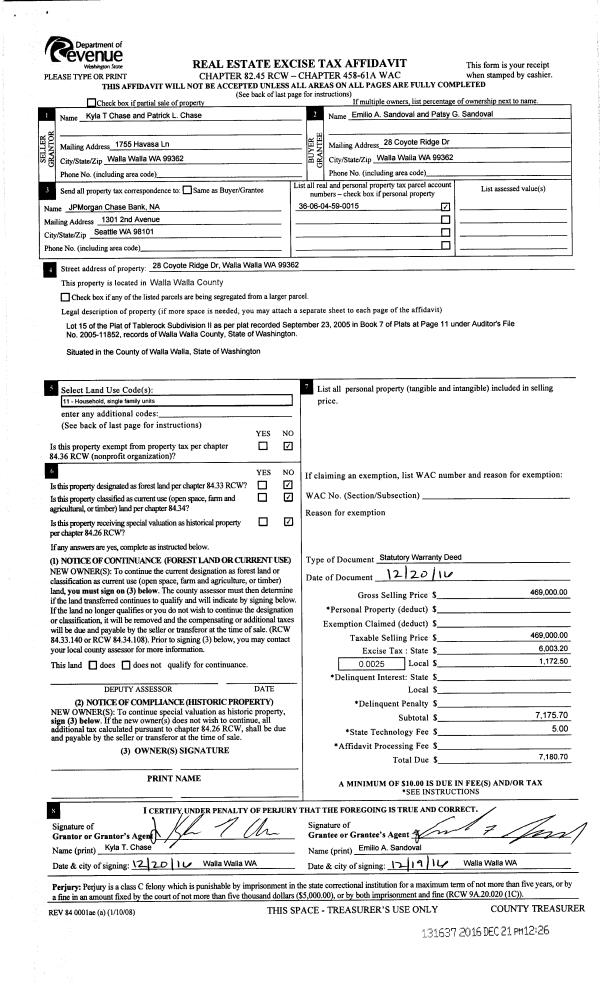 | 2 | 12/21/2016 | SWD | STATUTORY WARRANTY DEED | GREINER KYLA T | SANDOVAL EMILIO A | | | $469,000.00 | 131637 | 2016-10515 |