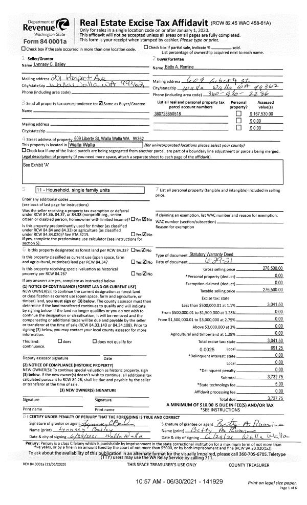 | 1 | 06/30/2021 | SWD | STATUTORY WARRANTY DEED | BAILEY LYNNSEY C | ROMINE BETTY A | | | $276,500.00 | 141929 | 2021-07930 |