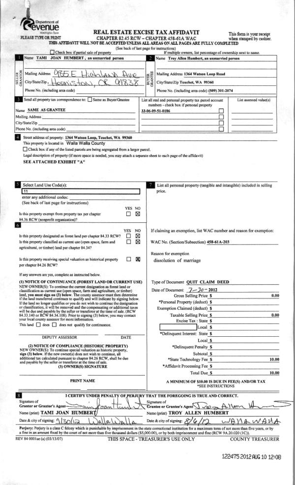 | 4 | 07/13/2012 | WARRANTY D | WARRANTY DEED | HUMBERT, TAMI | HUMBERT, TROY A | | | | 0 | CC #12-3-00095-1 |