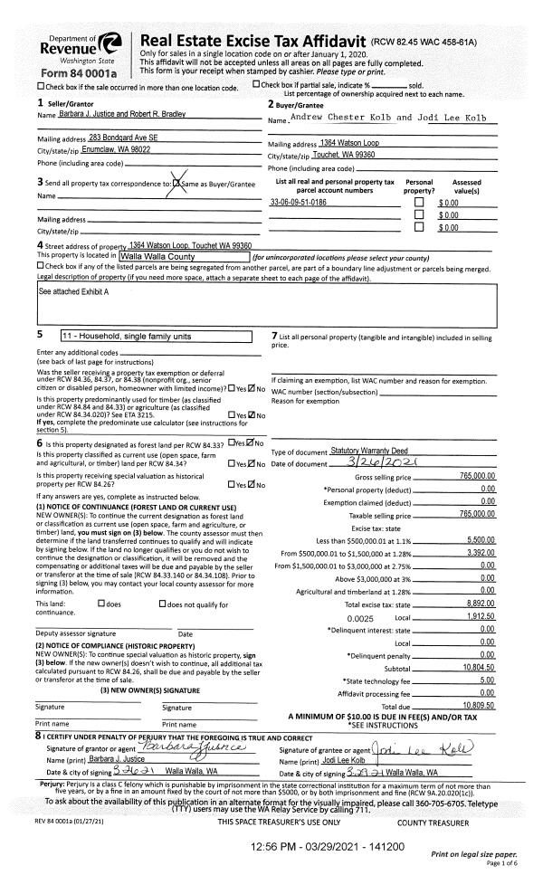 | 1 | 03/29/2021 | SWD | STATUTORY WARRANTY DEED | JUSTICE BARBARA J | KOLB ANDREW CHESTER & JODI LEE | | | $765,000.00 | 141200 | 2021-03539 |
