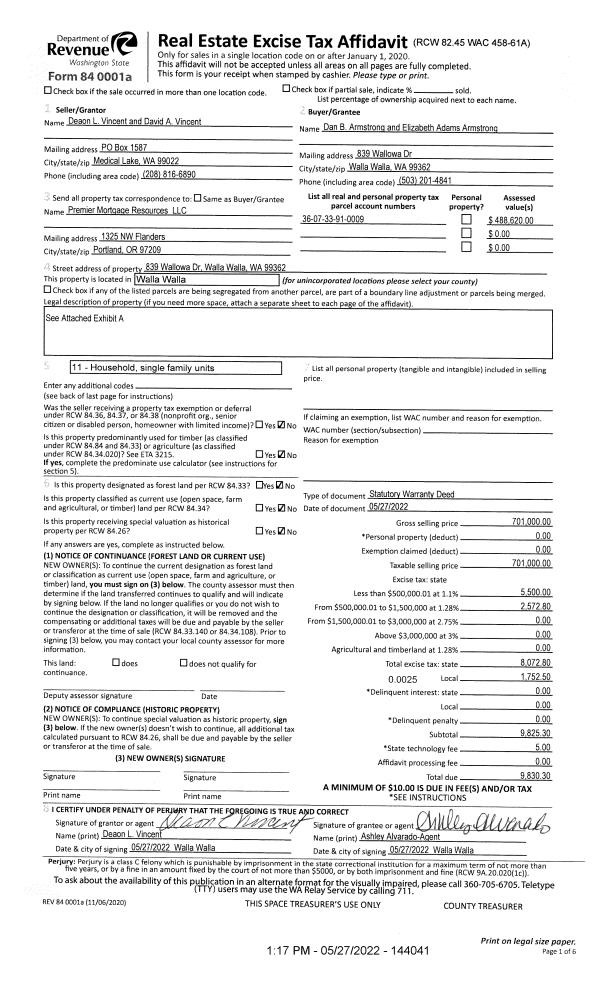 | 1 | 05/27/2022 | SWD | STATUTORY WARRANTY DEED | VINCENT DEAON L & DAVID A | ARMSTRONG DAN B & ELIZABETH ADAMS | | | $701,000.00 | 144041 | 2022-04616 |