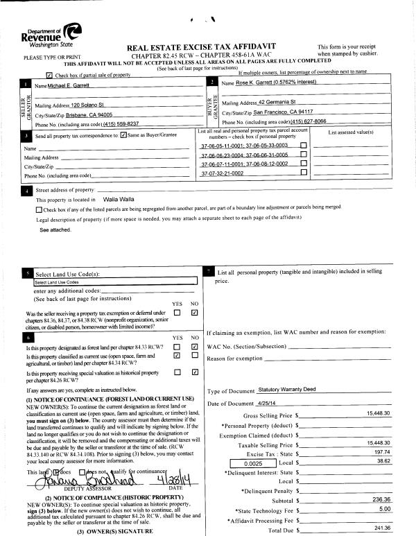 | 5 | 04/25/2014 | SWD | STATUTORY WARRANTY DEED | | GARRETT ROSE K | | 7-PARCELS | $15,448.00 | 125774 | 2014-02806 |
