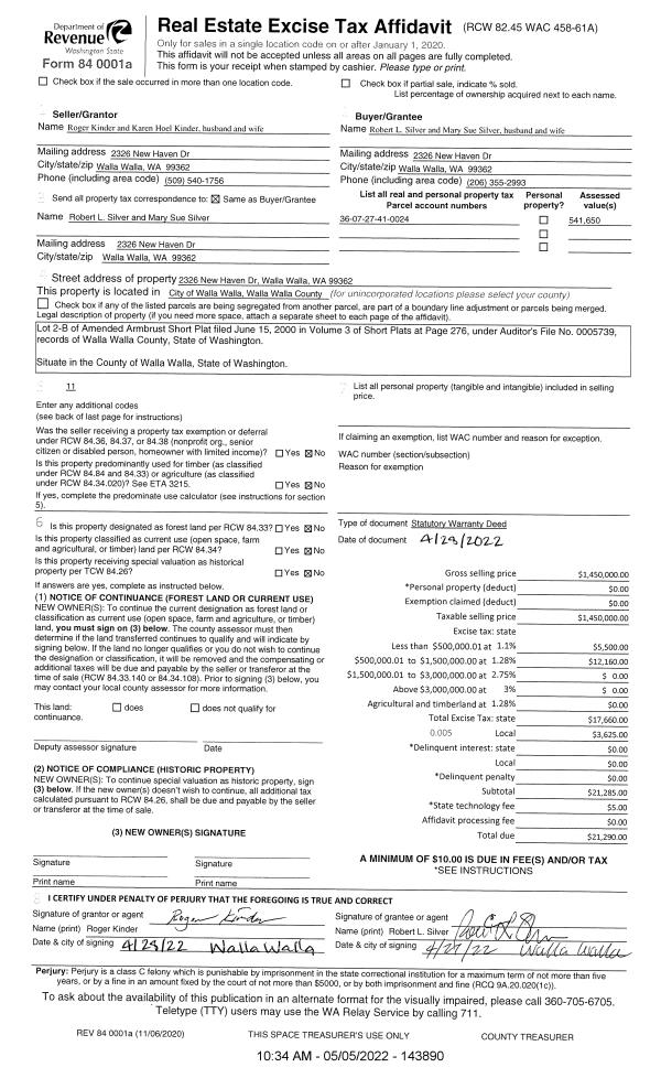 | 1 | 05/05/2022 | SWD | STATUTORY WARRANTY DEED | KINDER ROGER & KAREN | SILVER ROBERT L & MARY SUE | | | $1,450,000.00 | 143890 | 2022-03825 |