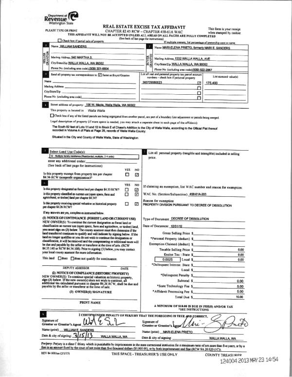 | 5 | 12/31/2012 | WARRANTY D | WARRANTY DEED | SANDERS, WILLIAM E | PRIETO, MARI-ELENA | | | $0.00 | 0 | CC #10-3--00369-4 |