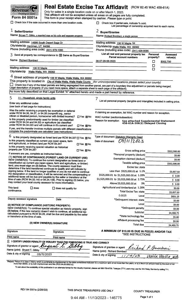 | 1 | 11/13/2023 | SWD | STATUTORY WARRANTY DEED | GIBBY BRYANT T | BOMBACI RICHARD | | | $332,500.00 | 146775 | 2023-06610 |