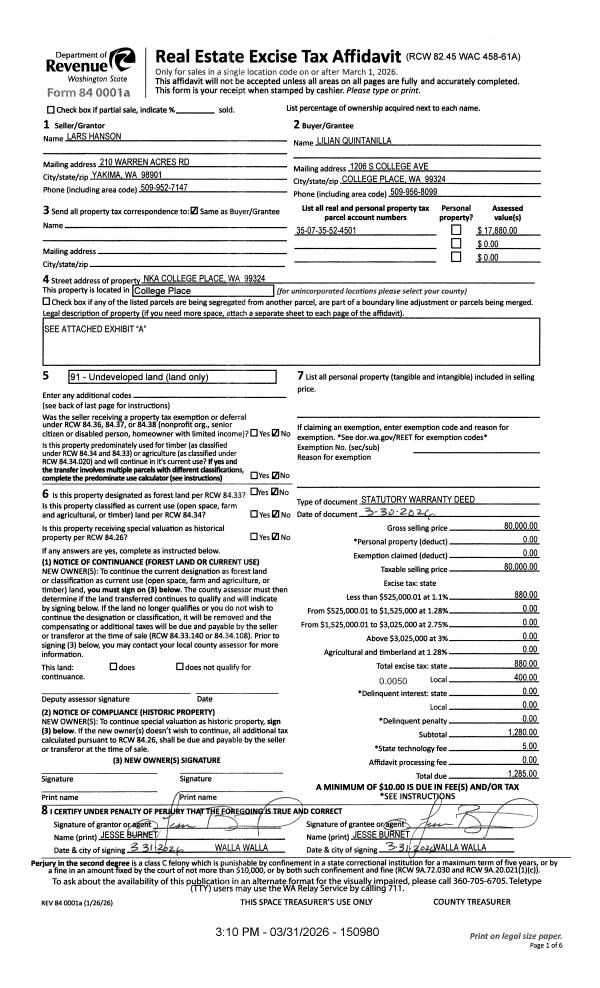 | | | | | Taxes w/o Exemptions: | N/A | | |
