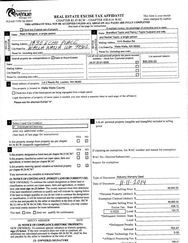 | 2 | 11/19/2014 | SWD | STATUTORY WARRANTY DEED | BERGEVIN REED A | TAYLOR BRADFORD & PENNY L | | | $49,900.00 | 126962 | 2014-08401 |