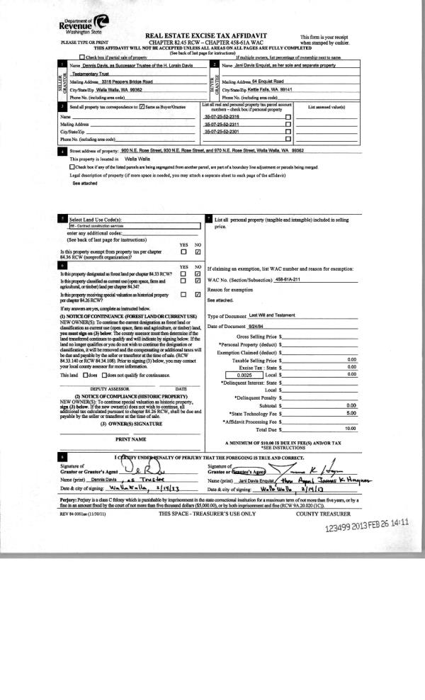| 2 | 02/26/2013 | WARRANTY D | WARRANTY DEED | DAVIS, DENNIS TRUSTEE OF H LOR | ENQUIST JANI DAVIS | | | $0.00 | 123499 | 2013-01718 |