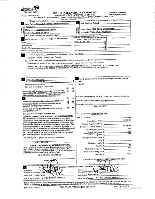 | 3 | 08/29/2019 | BARGAIN & | BARGAIN & SALE DEED | NATIONSTAR MORTGAGE LLC | ROLAND GREGORY | | | $131,000.00 | 137586 | 2019-06705 |